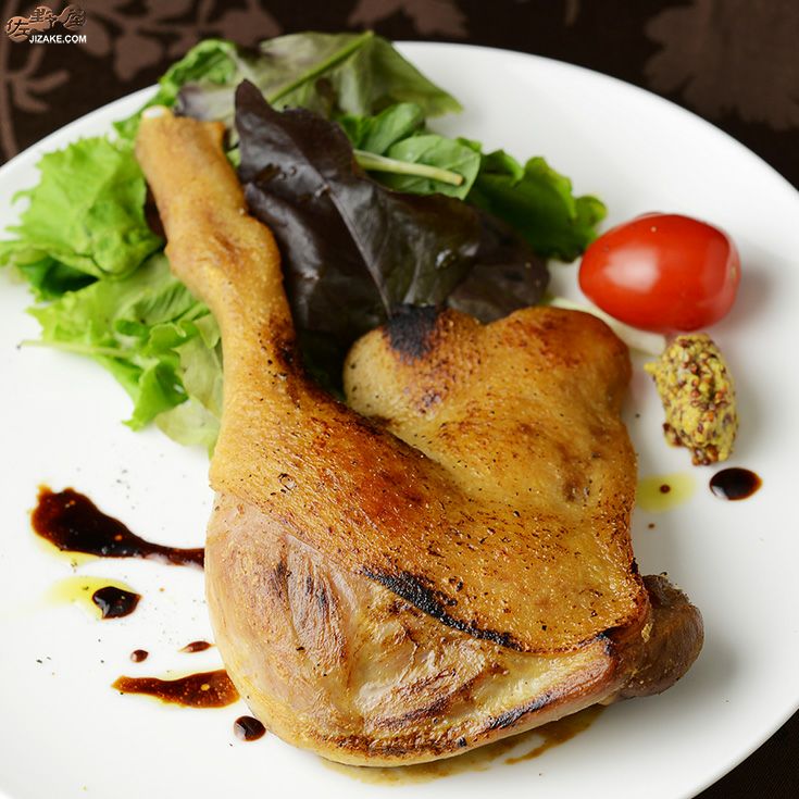 「一湖房の骨付き鴨のコンフィ」は鴨の腿肉を1日塩漬けにし、コットンシードオイル(綿実油)・グレープシードオイル・オリーヴオイルで低温でジックリ煮込まれています。