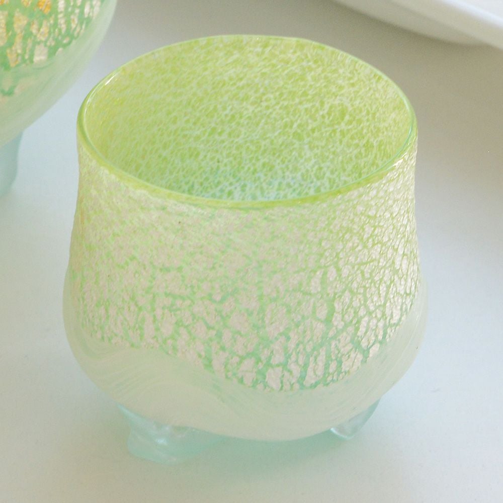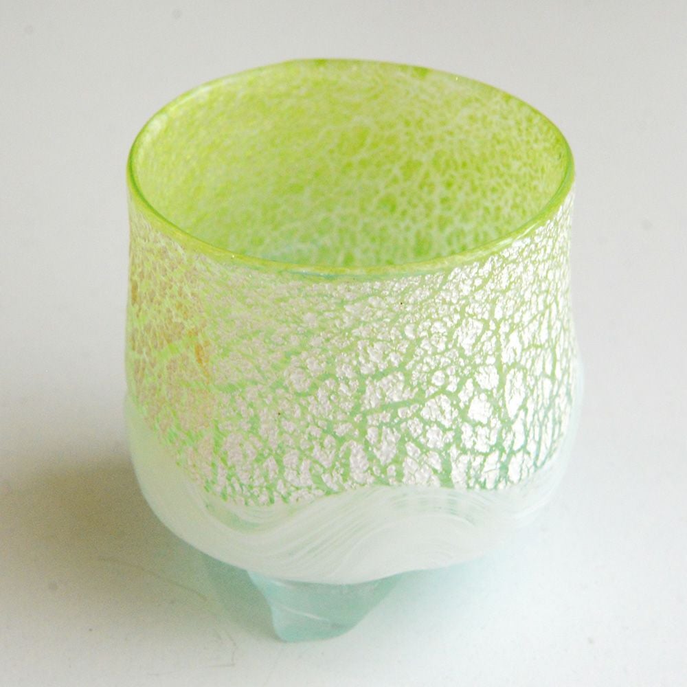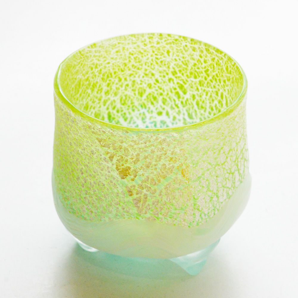 宙吹きによる手作りガラスの為、ガラスの底に丸い竿の跡が残ります。
