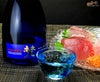 ベネチアンブルーのボトルが冴える上に、金色で書かれた「梵」の文字が白のテーブルクロスの上でキラリと輝きます。
