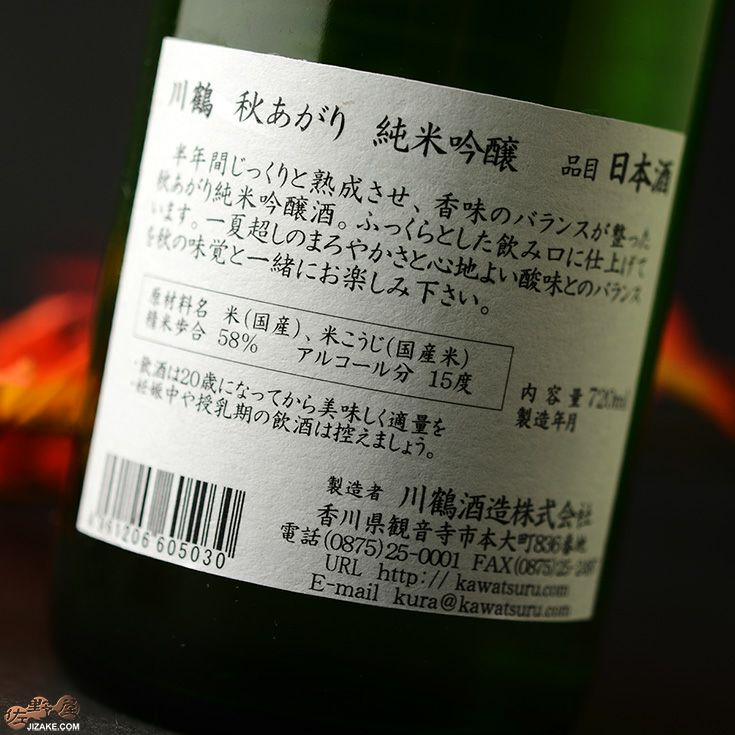 他の画像を見る 飲み応えバツグン!しかも軽快!絶妙バランスの秋あがり! ◇川鶴 純米酒ひやおろし さぬきよいまい 1800ml 販売価格 ¥ 2,970 税込 在庫切れ 再入荷お知らせ お気に入りに登録する