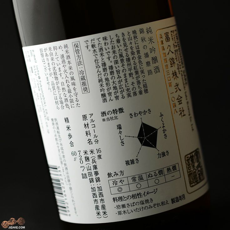 他の画像を見る 熟成による旨さと火入れの落ち着きで飲みやすい!秋の播磨路! ◇富久錦 純米吟醸ひやおろし 錦秋の播磨路(きんしゅうのはりまじ) 販売価格 ¥ 1,980 〜 ¥ 3,850 税込 販売価格 ¥ 税込 在庫切れ 詳細を見る お気に入りに登録する