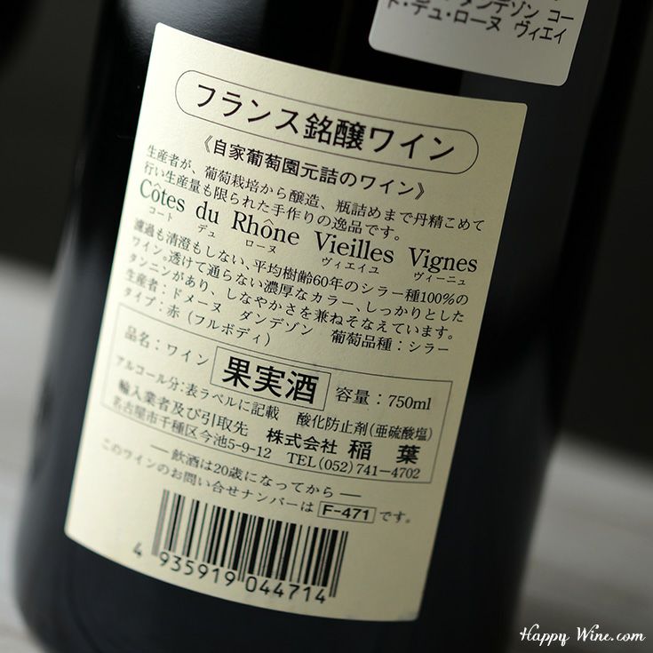 他の画像を見る 迫力あるルックスどおり濃 いローヌが美味しいっ! ◎ダンデゾン コート・デュ・ローヌ・ヴィラージュ シニャルグ(赤)2018 750ml 販売価格 ¥ 2,350 税込 在庫切れ 再入荷お知らせ お気に入りに登録する