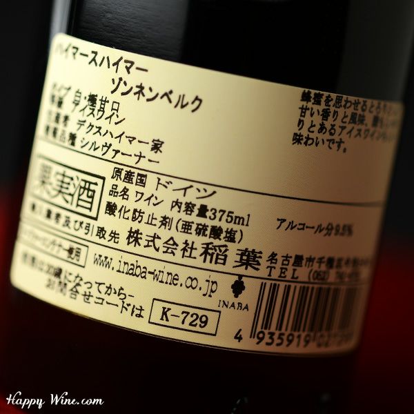 他の画像を見る 4年ぶりに造れました!厳冬が造る甘美なる氷酒! ◎デクスハイマー ハイマースハイマー ゾンネンベルク シルヴァーナ・アイスヴァイン(白) 375ml 販売価格 ¥ 4,180 税込 在庫切れ 詳細を見る お気に入りに登録する