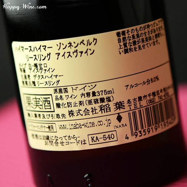 他の画像を見る 4年ぶりに造れました!厳冬が造る甘美なる氷酒! ◎デクスハイマー ハイマースハイマー ゾンネンベルク リースリング・アイスヴァイン(白) 375ml 販売価格 ¥ 4,400 税込 在庫切れ 詳細を見る お気に入りに登録する