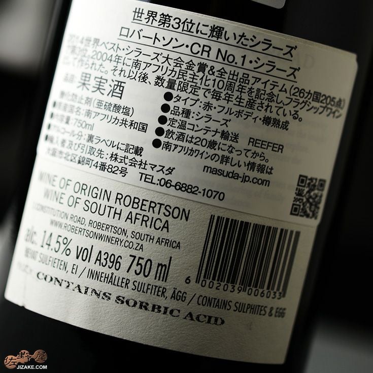 他の画像を見る 世界シラーズ大会3位獲得実績!名前に偽りなしの逸品! ◎ロバートソン コンスティチューション・ロード No.1シラーズ(赤) 750ml 販売価格 ¥ 4,400 税込 在庫切れ 詳細を見る お気に入りに登録する
