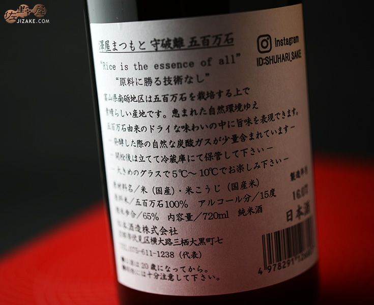 他の画像を見る 先代松本日出彦杜氏による市場に残る貴重な1本 ◇澤屋まつもと 守破離 ID164 2019 720ml ポイント(10%~)付与商品 販売価格 ¥ 2,970 税込 詳細を見る お気に入りに登録する